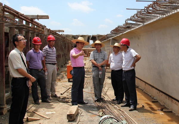5月9日,集團(tuán)公司副總經(jīng)理劉明洪蒞臨廣西航務(wù)工程處崇左市工業(yè)區(qū)公路№2標(biāo)檢查指導(dǎo)工作。劉明洪副總經(jīng)理重點(diǎn)視察了路面水泥穩(wěn)定碎石底基層試驗(yàn)段的鋪設(shè)和橋梁預(yù)制場(chǎng)預(yù)制箱梁情況,參觀過(guò)程中聽取了項(xiàng)目施工情況匯報(bào),了解目前施工存在的困難,以及下一步的施工計(jì)劃部署情況。