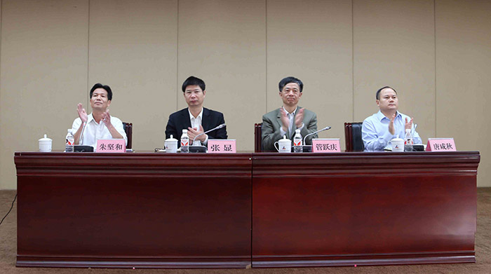 張顯在講話中指出,希望集團公司各級領導干部要帶好頭做表率,講政治、顧大局、守紀律,正確領會自治區黨委的決定,團結引領廣大的干部員工把思想統一到自治區黨委的決定精神上來,以實際行動支持和幫助唐咸秋同志開展工作;希望集團公司領導班子團結帶領廣大員工,牢固樹立創新、協調、綠色、開放、共享的發展理念,抓住機遇、解放思想、銳意進取,以嚴和實的作風,推動企業的改革創新,積極開拓市場業務,注重加強內部管理,勇于破解發展難題,努力開創各項工作新局面,把企業做強做優做大,為實現“十三五”規劃,加快實現廣西“兩個建成”宏偉目標做出新的更大貢獻。