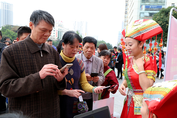身著統(tǒng)一服裝,肩披綬帶、胸扣團徽的ETC推廣青年突擊隊員向過往的行人宣傳ETC的相關(guān)知識,耐心解答車主朋友們的疑問,并現(xiàn)場演示ETC八桂行卡的安裝過程,使廣大社區(qū)市民對ETC有了一個初步的認識。6名身著靚麗壯族服飾瞬間吸引住了往來市民的眼光,紛紛前來咨詢業(yè)務(wù)。活動期間,一卡通公司客服人員熱情地向社區(qū)居民發(fā)放了100張“桂民卡·體驗卡”,亦有不少市民被桂民卡精美的版面設(shè)計和強大的互聯(lián)互通功能所吸引,紛紛在現(xiàn)場辦理購卡及充值業(yè)務(wù)。票通公司客服人員則向社區(qū)居民推介了廣西人自己的道路客運網(wǎng)絡(luò)售票平臺——“桂客行”,耐心地向市民解析平臺功能、覆蓋范圍等,并協(xié)助市民下載“桂客行”手機APP。