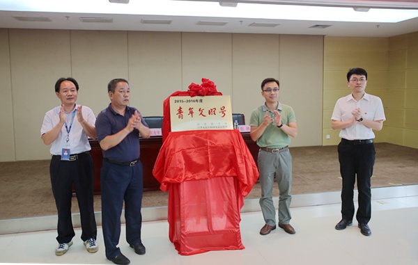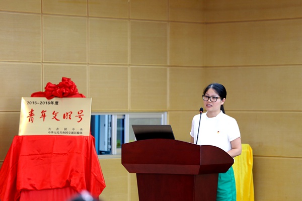 隨后,交通運(yùn)輸廳團(tuán)委阮夏恒書(shū)記宣讀共青團(tuán)中央聯(lián)合其他21個(gè)部委下文的《關(guān)于命名2015—2016年度全國(guó)“青年文明號(hào)”的決定》。宣讀完畢后,團(tuán)區(qū)委青年發(fā)展部部長(zhǎng)助理張弛、交通廳團(tuán)委書(shū)記阮夏恒、集團(tuán)公司黨委副書(shū)記張友坐、設(shè)計(jì)院公司黨委書(shū)記周錚共同為“青年文明號(hào)”揭牌。