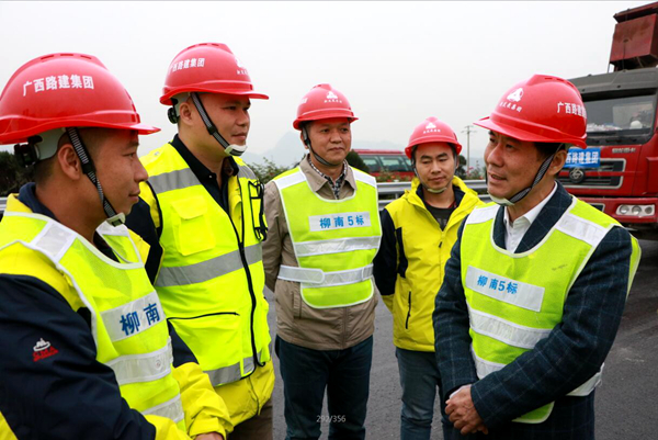 宣講會結(jié)束后,黃健教授深入柳州至南寧高速公路改擴(kuò)建5標(biāo)項目施工一線調(diào)研,與現(xiàn)場施工人員進(jìn)行親切交流,并就職工提出的問題一一進(jìn)行耐心解答。(廣西路建集團(tuán) 供稿)