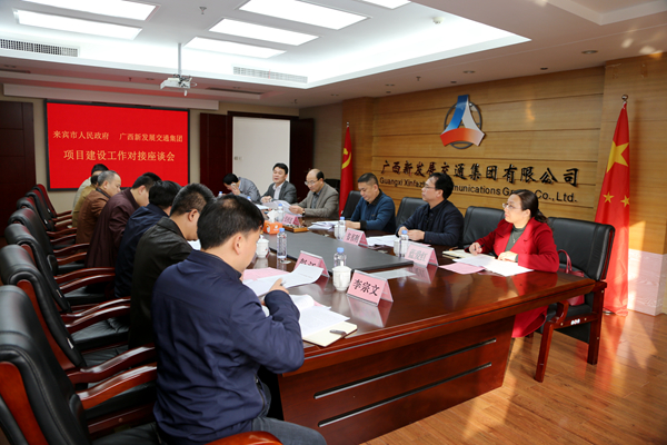 1月24日,來(lái)賓市人民政府副市長(zhǎng)韋平率隊(duì)來(lái)訪,與集團(tuán)公司黨委副書(shū)記、副董事長(zhǎng)、總經(jīng)理唐咸秋等領(lǐng)導(dǎo)進(jìn)行高速公路及路網(wǎng)建設(shè)項(xiàng)目工作對(duì)接。