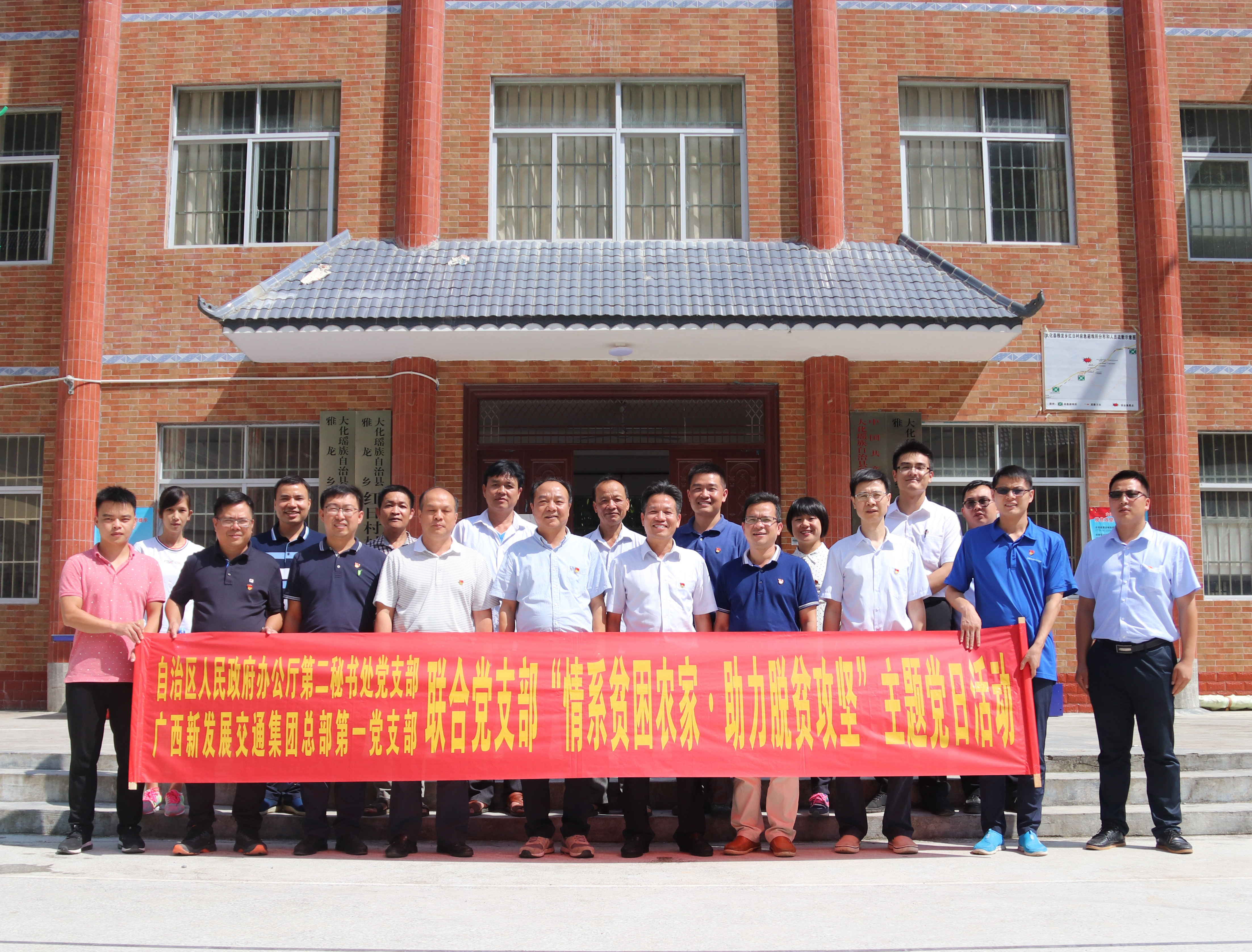 在七一建黨節(jié)到來之際,為表達(dá)自治區(qū)政府對貧困戶的關(guān)懷,激勵貧困戶燃起脫貧信心,致力脫貧,6月29日,自治區(qū)政府辦公廳第二秘書處黨支部和集團(tuán)總部黨支部在自治區(qū)人民政府副秘書長黃植建,集團(tuán)公司黨委書記、董事長朱堅和的帶領(lǐng)下深入大化瑤族自治縣雅龍鄉(xiāng)紅日村,對12戶貧困戶進(jìn)行了走訪慰問,并舉行座談會。