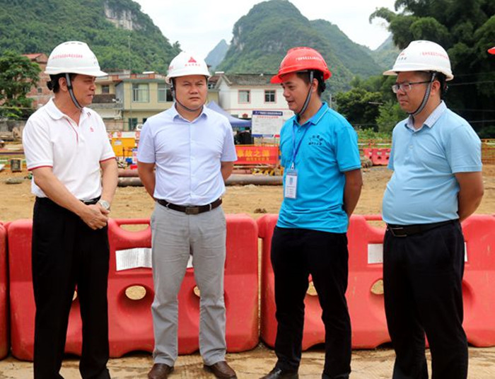 在為期兩天的督查工作中,督察組一行沿著融河高速主線縱向便道深入到施工建設(shè)一線,重點(diǎn)對(duì)武陽江大橋、雙合隧道、羅城服務(wù)區(qū)、古毛大橋、小隘特大橋等關(guān)鍵控制性工程的建設(shè)進(jìn)展情況進(jìn)行實(shí)地調(diào)研督查,同時(shí)對(duì)指揮部、總經(jīng)理部及五個(gè)分部進(jìn)行質(zhì)量、安全內(nèi)業(yè)資料檢查。督察期間,唐咸秋與河池市政協(xié)副主席蘇志宏就融河高速沿線征拆工作、高壓桿線遷移等問題進(jìn)行了磋商,并與設(shè)計(jì)單位就相關(guān)設(shè)計(jì)問題進(jìn)行探討。