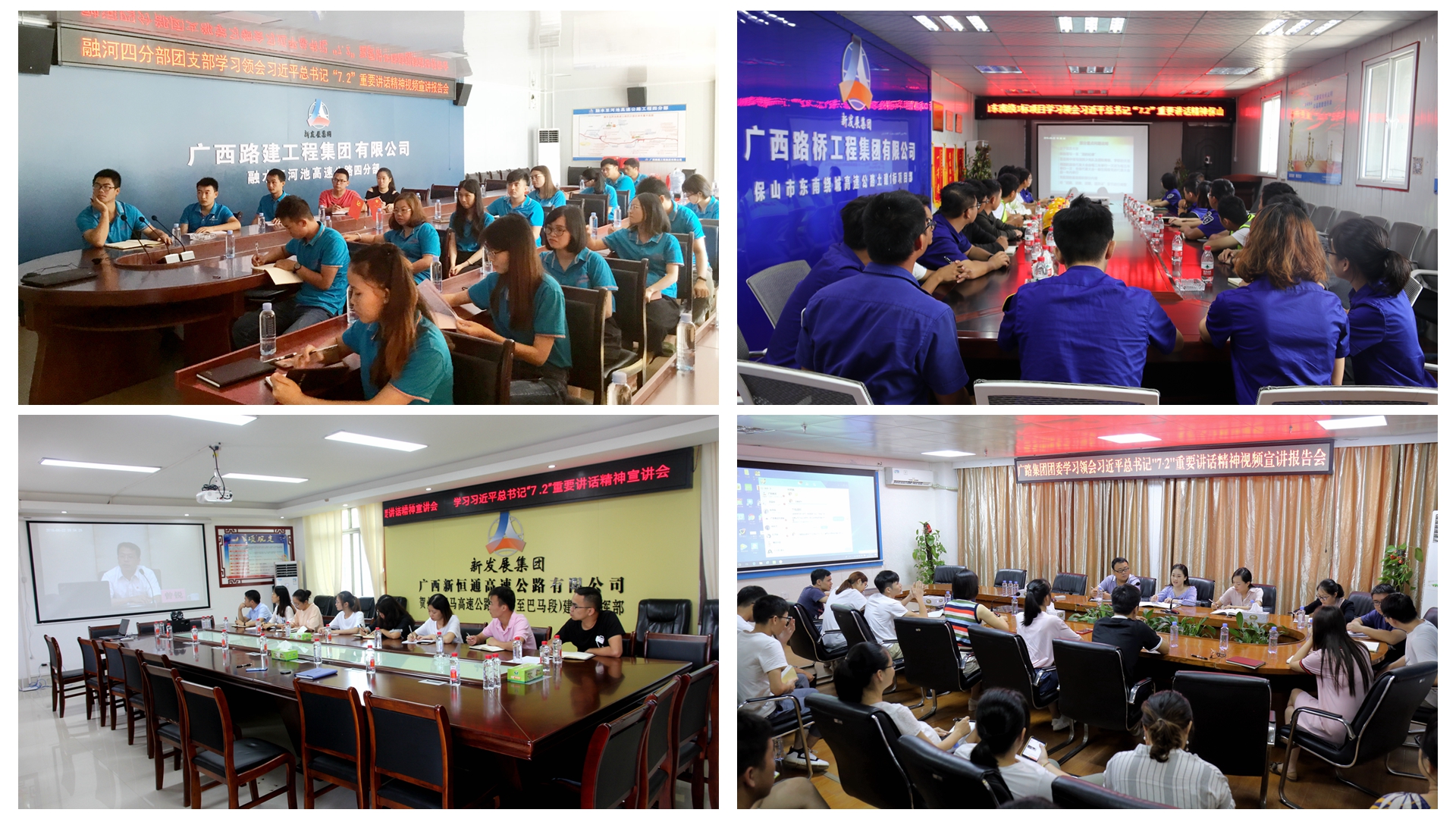 8月22日,集團公司團委組織總部、交通設計公司、翔路公司、小額貸公司、捷通公司、交通一卡通公司青年團員集中觀看團中央關于“學習領會習近平總書記‘7.2’重要講話精神視頻宣講報告會”直播視頻。廣西路橋、廣西路建、交通設計公司、交科院公司、廣路實業、翔路公司、新恒通公司、桂通公司等相應組織生產一線的各級團組織收看直播活動。經統計,有109個團組織共組織了127場集中收看活動,1652名團員青年集中收看報告會直播。