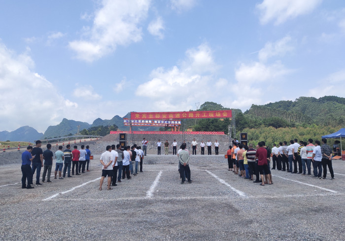 開工現(xiàn)場會在河池市都安瑤族自治縣召開。廣西北部灣投資集團有限公司黨委副書記、副董事長、總經(jīng)理高新宣布項目開工。自治區(qū)高速公路管理局局長周北,河池市委常委、市人民政府常務副市長韋朝暉等領導參加會議。