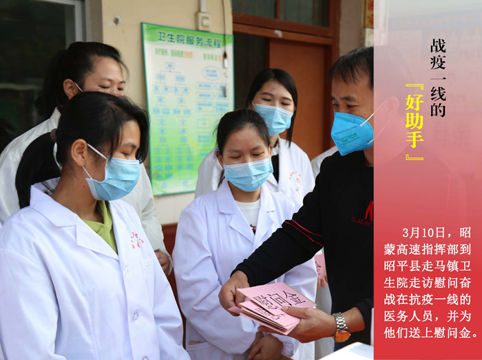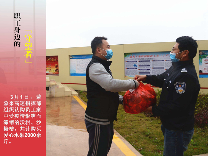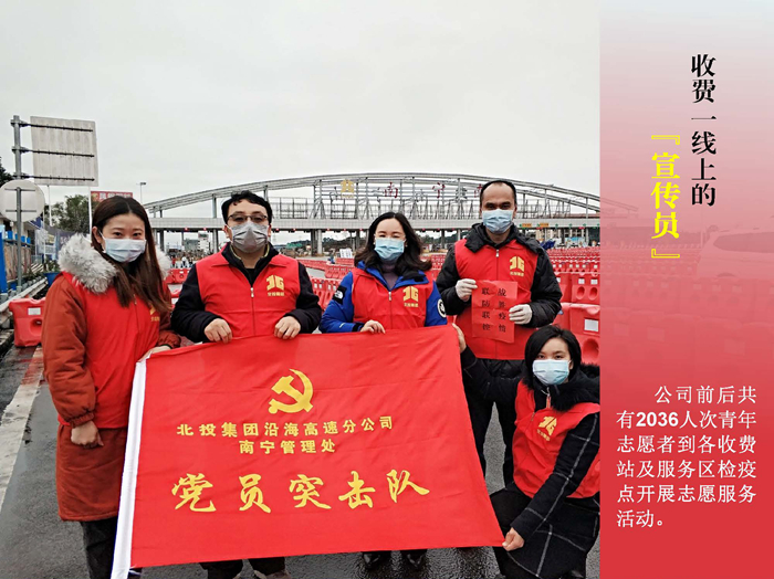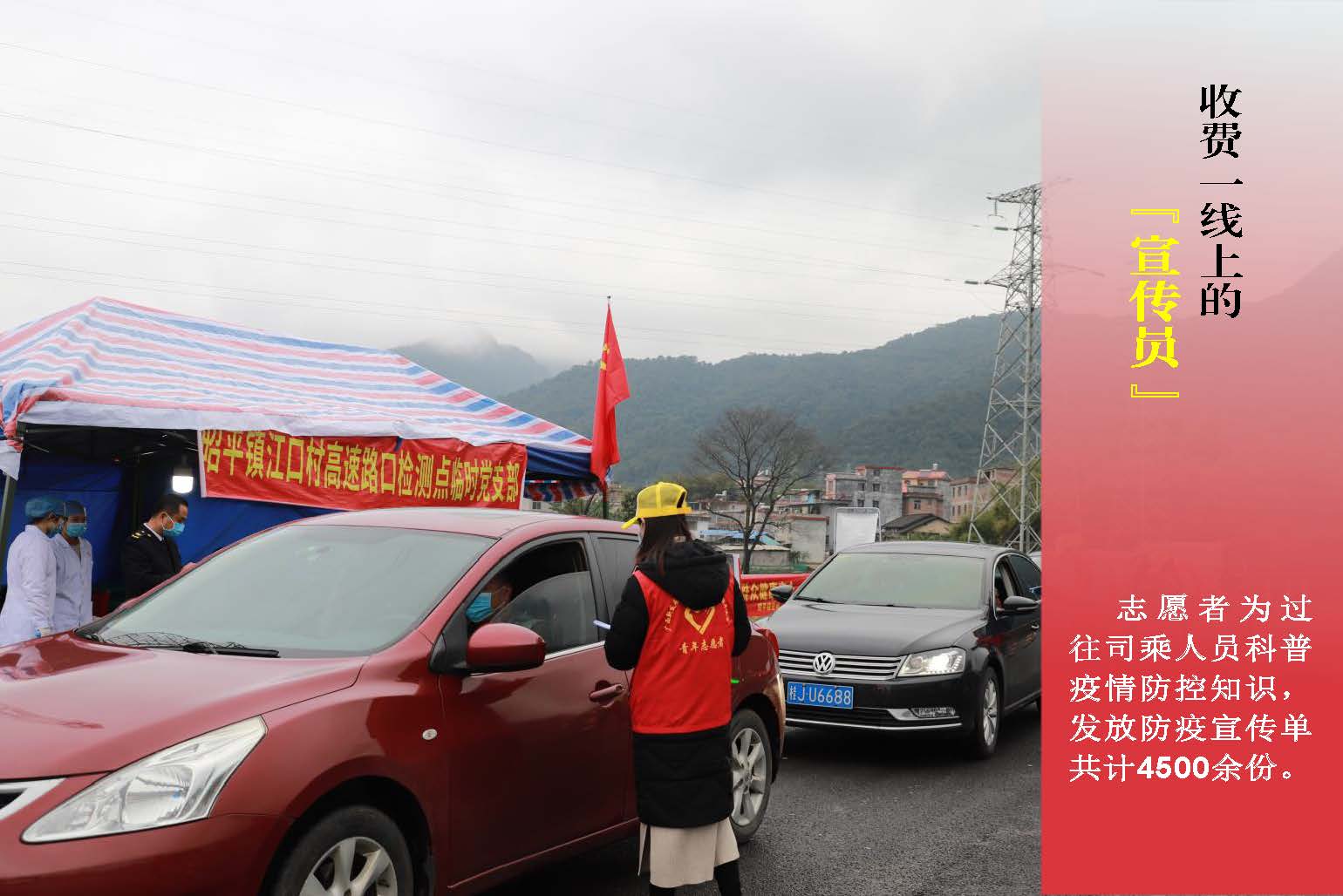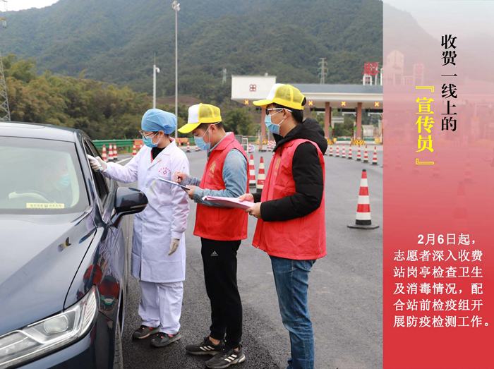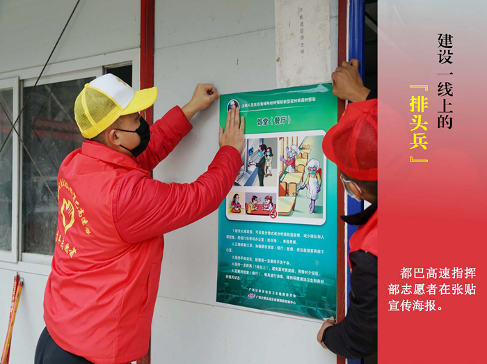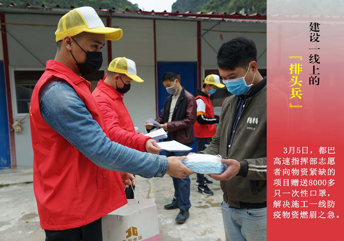 在項目建設工地、收費站、服務區、駐地街道社區,一個個身穿紅馬甲、頭戴黃帽子的志愿者奔忙在廣西高速公路投資建設運營的戰“疫”前線;防疫宣傳、愛心認購、義務剪發······一幅幅暖心畫面不停呈現。